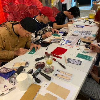 At the THÌN exhibition, I am proud to present two of my works, SUỐT and THAO. These pieces have garnered attention for their innovative blend of folk culture and contemporary materials, creating a fresh and artistic perspective. Both works are crafted using the Rubber Printing technique, which deman